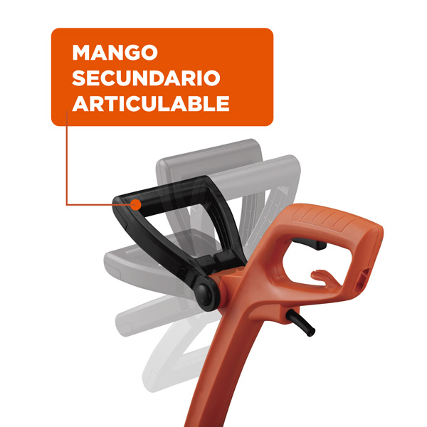 "Orilladora 9 Pulgadas • Potencia: 350W • Voltaje: 120V • Velocidad: 12000 RPM • Ancho de corte: 9' (23cm) • Diámetro de cue7rda: 1,65 mm • Carrete de repuesto: RS-300 • Mango articulado para mayor comodidad y control. • Traba que asegura el cable de extensión. • Sistema de alimentación por bombeo. • Desmontable para fácil almacenaje."
