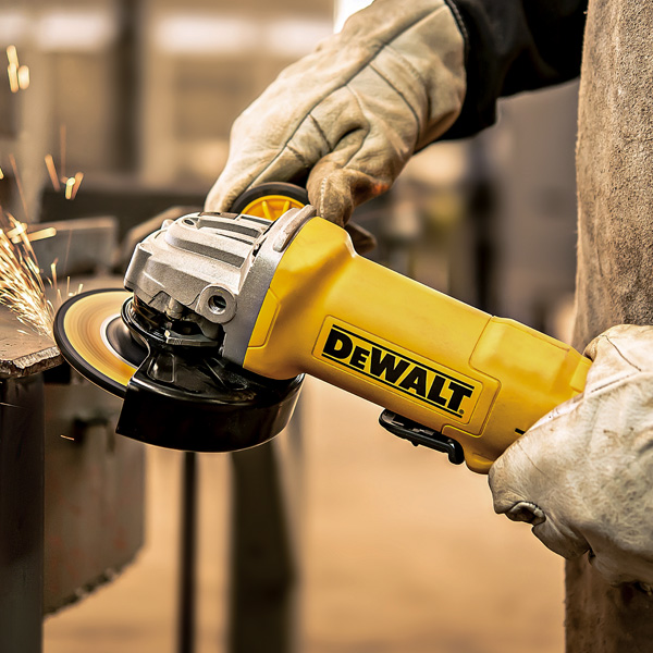 "Esmeriladora Angular de 4-1/2"" (115mm) • Potente motor de 1200W - 11000 rpm, que ofrece mayor velocidad bajo cargas de trabajo pesado. • Interruptor tipo paleta que aumenta la seguridad del operario y el confort. • Sistema de expulsión de polvo protege de la abrasión el motor de la herramienta otorgando el doble de tiempo de vida. • Mango robusto de 2 posiciones para otorgar versatilidad y seguridad en el uso. • Guarda de seguridad de ajuste rápido 360°. • Cuerpo de circunferencia compacta otorgando lo mejor de ergonomía en su clase (194mm)."