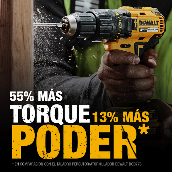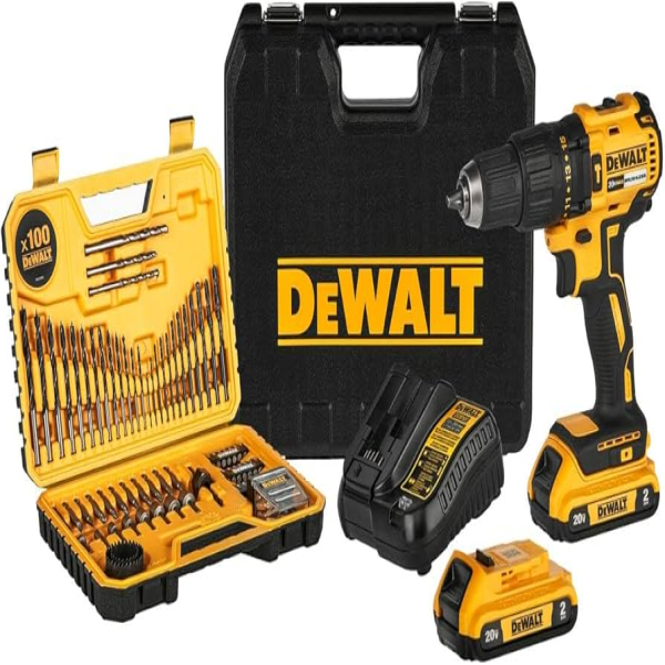 "• Kit de Taladro Percutor/Atornillador de 1/2"" (13mm) Inalámbrico 20V MAX • Mandril de ajuste rápido permite cambio de accesorios con mayor facilidad. • Indicador de carga en la batería • Función de Atornillador con 15 posiciones de Torque. • Dos velocidades mecánicas, permite un rango mayor de aplicaciones de perforación y fijación. • Luz LED para mayor visibilidad en espacios oscuros y estrechos. • Interruptor de velocidad variable para mayor control y precisión en materiales delicados. Incluye: (1) Taladro Percutor/Atornillador de 20V MAX* DCD7781 / (2) Baterías de Ion de Litio DCB203 de 20V MÁX.* (2,0 Ah) / (1) Cargador / (100) Accesorios / (1) Caja Plástica"