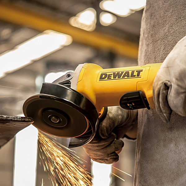 "Esmeriladora Angular de 4-1/2"" (115mm) • Potente motor de 1200W - 11000 rpm, que ofrece mayor velocidad bajo cargas de trabajo pesado. • Interruptor tipo paleta que aumenta la seguridad del operario y el confort. • Sistema de expulsión de polvo protege de la abrasión el motor de la herramienta otorgando el doble de tiempo de vida. • Mango robusto de 2 posiciones para otorgar versatilidad y seguridad en el uso. • Guarda de seguridad de ajuste rápido 360°. • Cuerpo de circunferencia compacta otorgando lo mejor de ergonomía en su clase (194mm)."